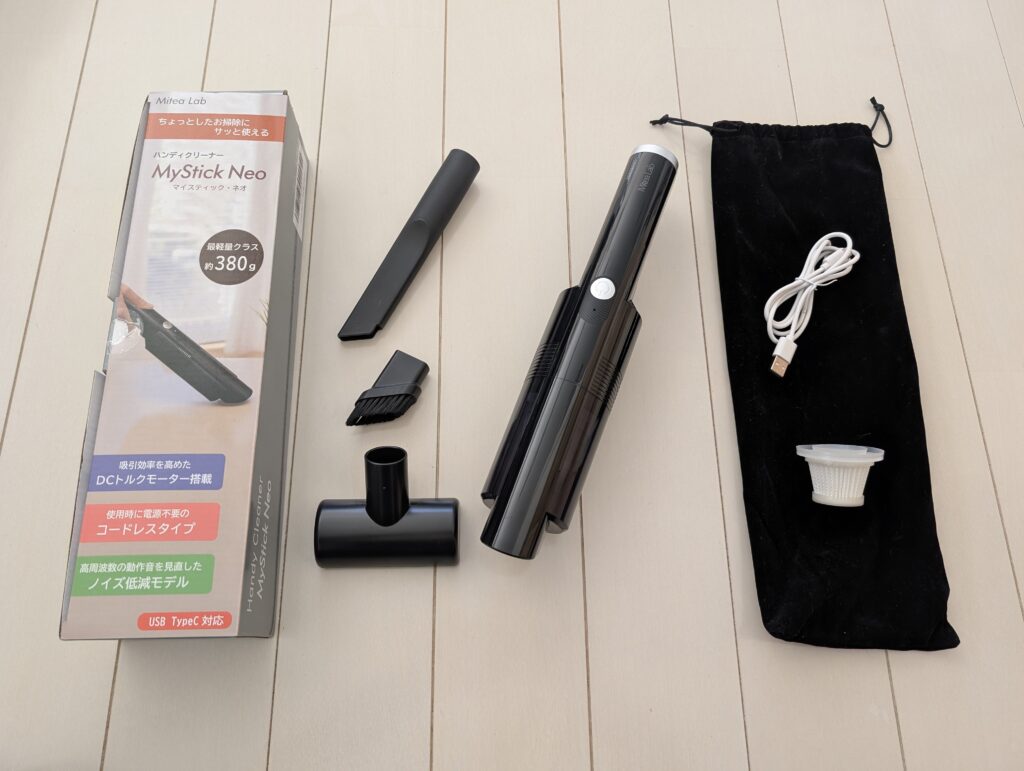TypeC充電で、スマホの充電器がそのまま使えるので荷物も減ってGOOD。あとは小さくてかわいい色々な形のアタッチメントがついてます。とはいえ、メインの細長いの1本あれば事足りるので、車に積むのはそれだけでいいかも。