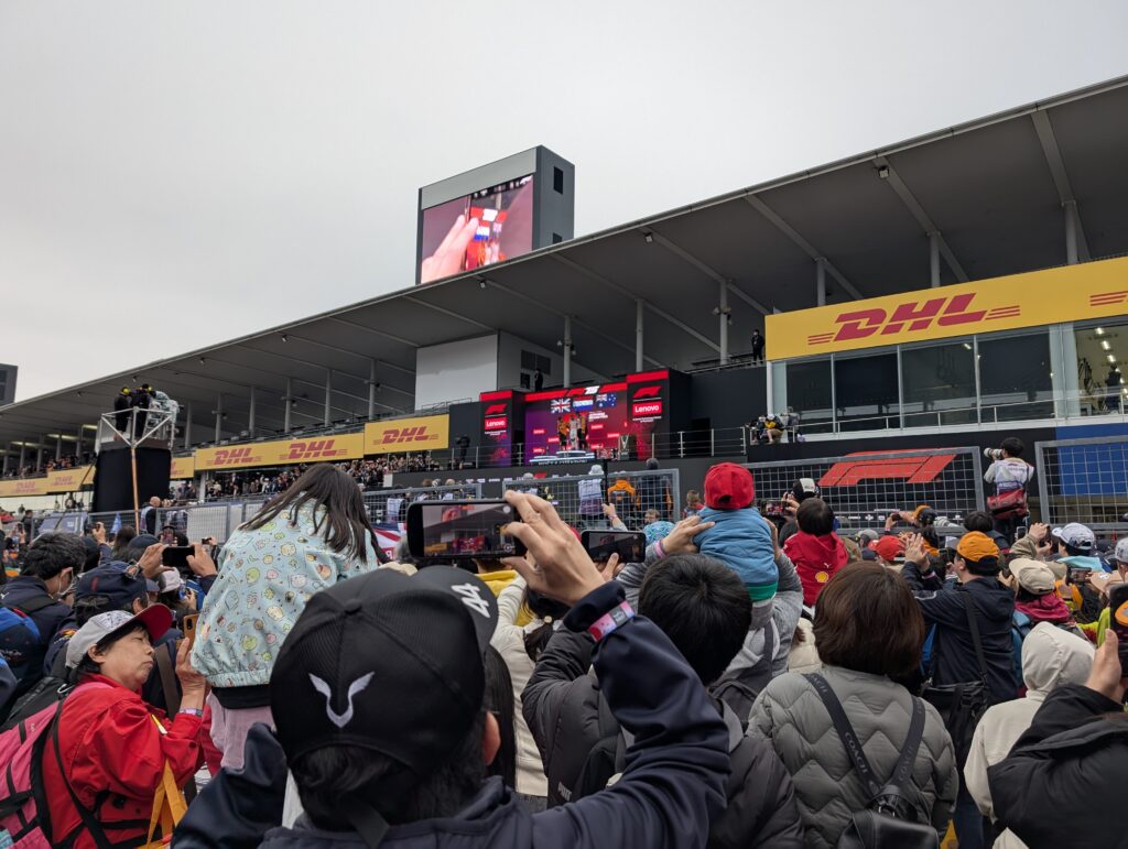 運が良ければドライバーがでてくることも!?(2025年はハミルトンが、2024年はサインツが出てきてサイン会してました。2023年は誰もでてきませんでした)