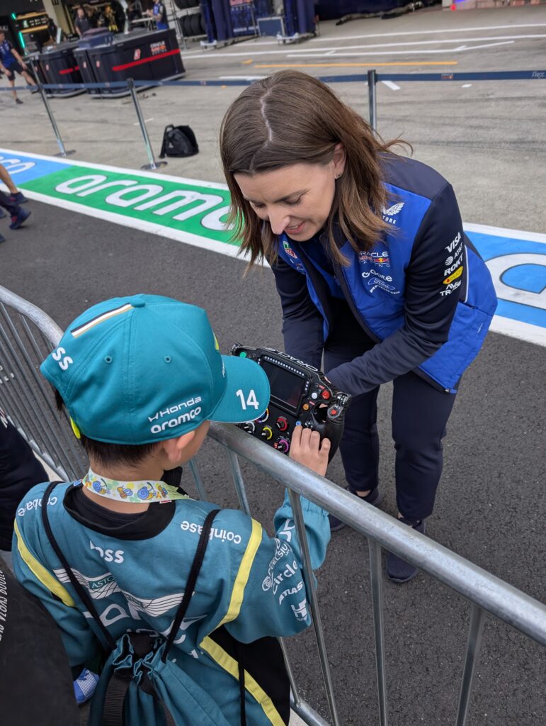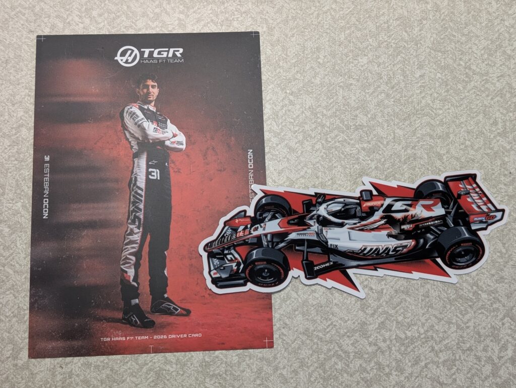 さらにファンサービスの盛んなチーム(レッドブル・ハ―ス・ウィリアムズ・アルピーヌなど)は、ステッカーやドライバーカードを配ってくれたり、レッドブルはステアリングを触らせくれたりマックスのヘルメットを近くで見せてくれたりしました。