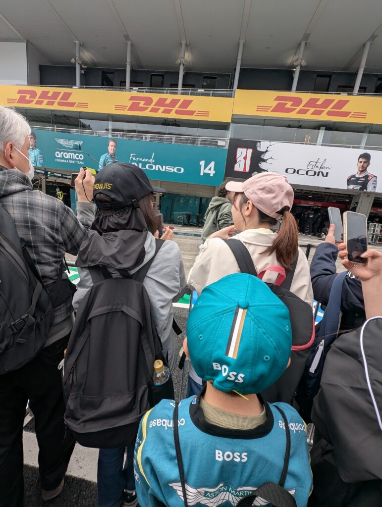 我が家の子供たちは、すっかり熱心なF1ファンになっているので、ピットウォーク絶対行く!!と行って長蛇の列に30分は並んで参加しました。(ピットロード入場まで、ホームストレート上でかなり待ちました。かなり暑かったです)