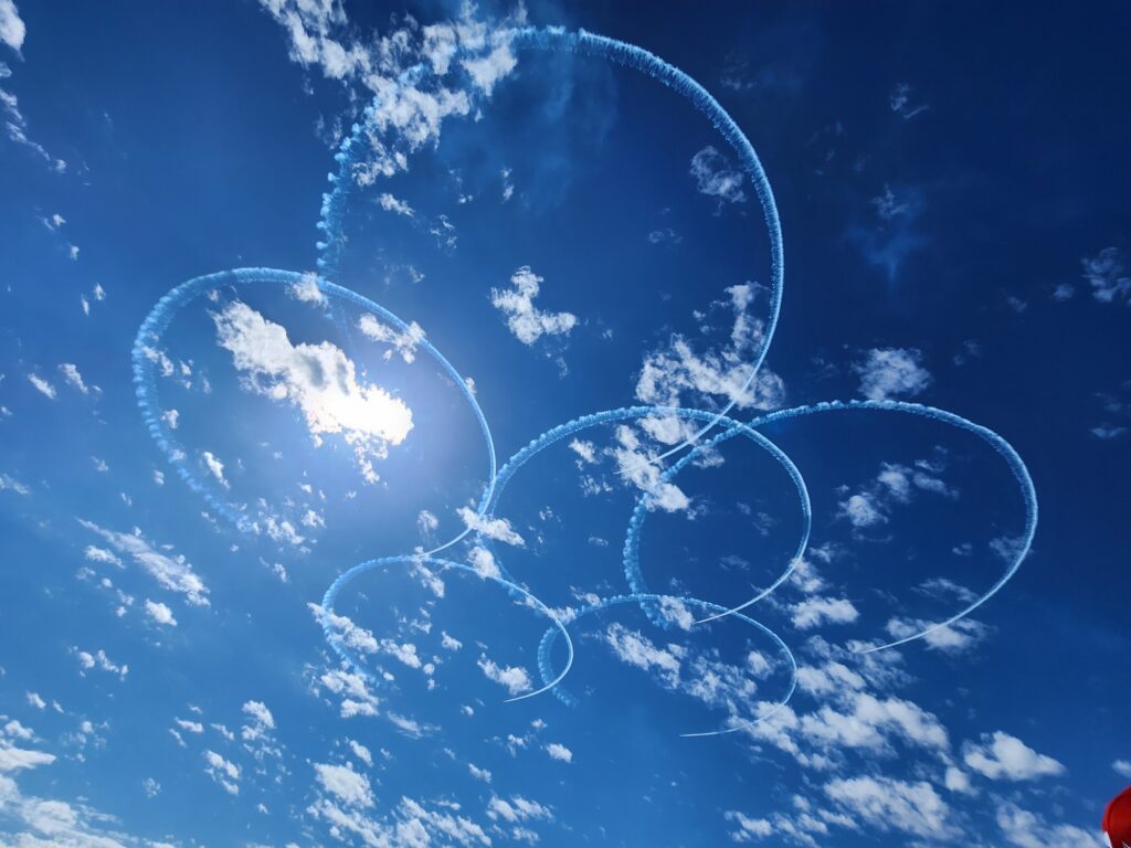 特にブルーインパルスは、グランドスタンドでなくても観る事ができたので、とても印象に残っています。