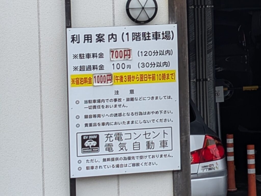 なんとここ、車中泊料金がきちんと設定されていて、車中泊が公認されている駐車場なんです。